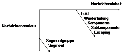 The most significant delimiter (CR = carriage return) is separating the individual segments and thus provides the segment-oriented message structure to be able to express coherent message units. Herewith one can decide on "top level" whether an information unit (segment or segment group) can be processed or not. But the message structure must be known therefore. Conversely, within the appropriate hierarchy structure it can be identified this way, so that it can be decided directly whether processing of the segment or segment group is possible or not. Within a segment which is identified by an acronym of three letters (for example, PID = Patient IDentification), the fields carry the actual information. Once a segment is to be processed, the decoding takes place in the second dimension. Here, the individual information is extracted about 5 other delimiters. The following is an example of an admission message: