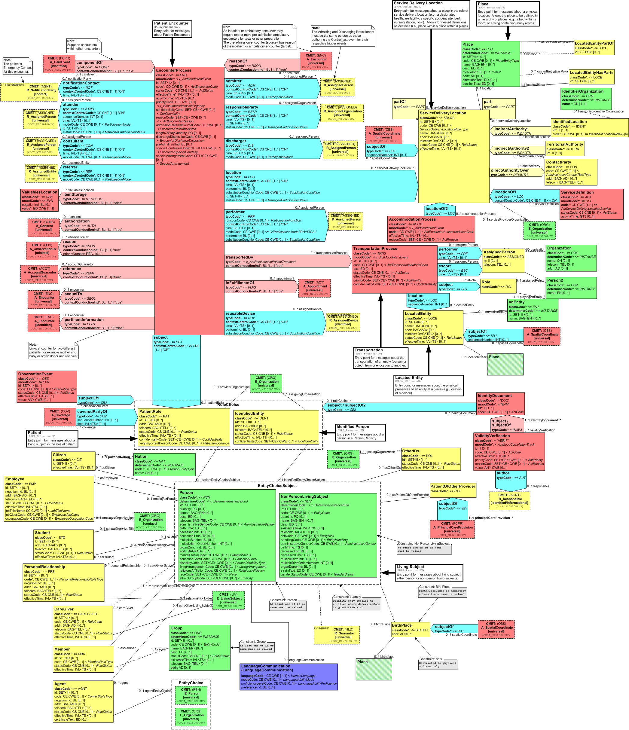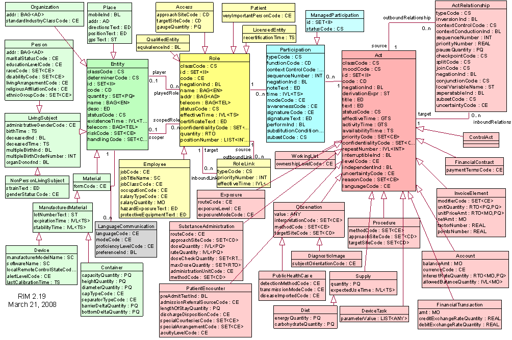 The entire reference model (herein after RIM 0208) includes the base classes and their specializations, in a print-optimized version: