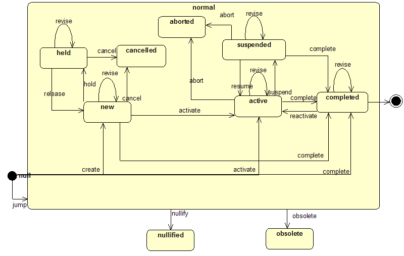 The foundations for this are explained in more detail in subsequent sections. 2.2.1. State TransitionsOne reason to send a message is the change of an internal state of an entity or an activity. For this purpose, the generic state transitions that will be implemented in the form of state machines have been defined. In the various scenarios subsets of these generic definition of events are specified and communicated by messages.