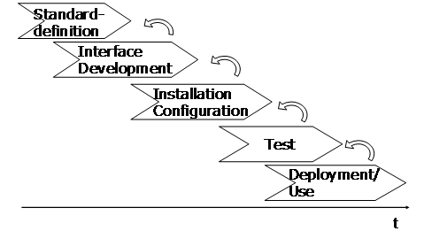 3. Improvement of interoperabilityPractical interoperability (working interoperability) can ultimately be demonstrated only in running systems / applications. This must be done based on (completely) developed interfaces. On the timeline of the process steps this is the last one: